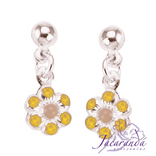 8917-Pendientes de Plata 925 con esmalte de colores diseño Margarita con cabezal 8 mm