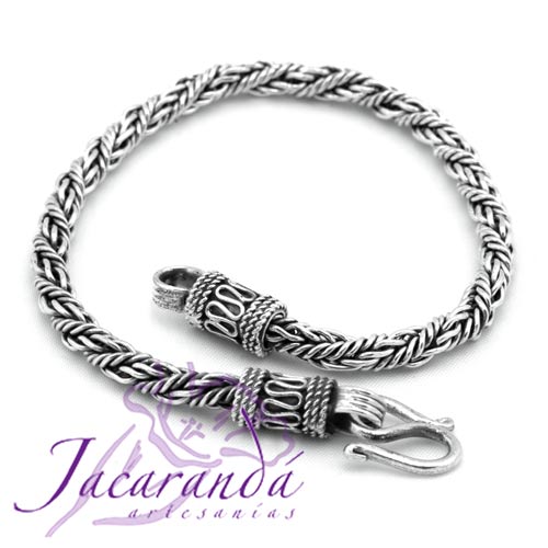 Pulsera cadena serpiente, hecha a mano flexible snake, unisex de 6 mm de diámetro de plata uso diario.